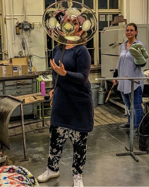 Onsdag 4. desember var klubben så heldig å få besøke Cornelia Skuggen sitt glass studio på Devoldfabrikken i Langevågen. Der fikk vi oppleve teamarbeidet når Cornelia og assistenten hennes laget et flott glassfat med publikum tilstede.