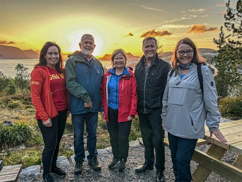 Anne Berit Støyva Emblem fra Friluftsrådet, prosjektleder for "Rotarystien" Kjell H. Sandli, fjordårets president i Aalesund Øst Rotaryklubb Anne Marit Blix Bondevik, assisterende guvernør i Rotarydistrikt 2305 Arnold Rørstad og årets president i Aalesund Øst Rotaryklubb Kristin Wangensteen.