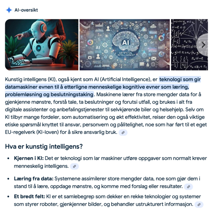 Hva er så Artificial Intelligence eller Kunstig Intelligens?  Ingen er kanskje bedre til å forklare dette enn AI selv.