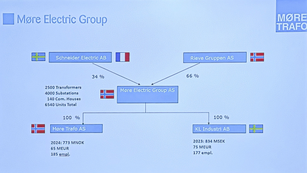 Det var Oddvar, far til Dag, som i 1951 kjøpte Det Vestnorske Elektriske for 10.000 kroner. Lånet til oppkjøpet av Vestnorske satt langt inne hos banksjefen i Sykkylven. Ikke bare snakket denne mannen østlending, men han røykte og tok seg et glass alkohol også - så noe lån kom ikke på tale. Hadde det ikke vært for at sjølvaste Jens E. Ekornes troppet opp på banksjefens kontor og tok en alvorsprat hadde muligens ikke Møre Trafo sett dagens lys. I dag er bedriften nordens største produsent av transformatorer og nettstasjoner i spenningsområdet 20 kV ned til 230/400 v. Møre Trafo har et salgsbudsjett på om lag 740 mill i 2025. Markedet er godt og budsjettmålet er innen rekkevidde.